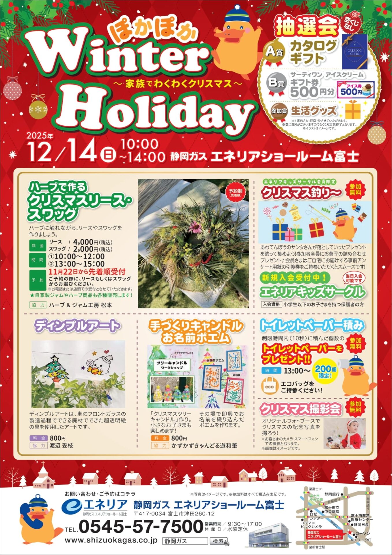 12月14日㈰、静岡ガスエネリアショールーム富士にて開催される「ぽかぽかWinter Holiday~家族でわくわくクリスマス~」にて、現在開発中のアイス3種類の無料試食会を行います。